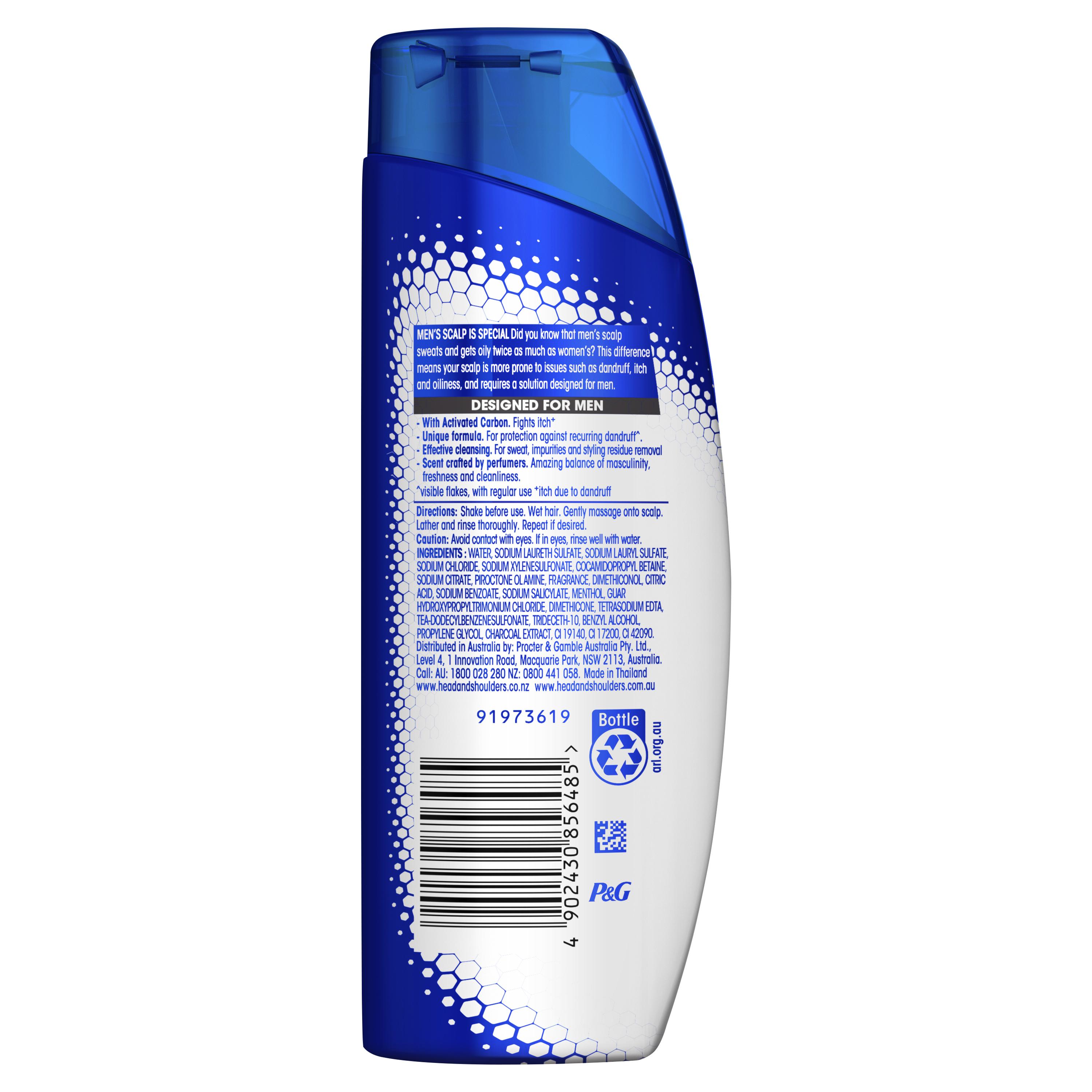 Unique 3X ACTION formula designed for men that detoxes scalp, prevents dandruff and gives manly scent.